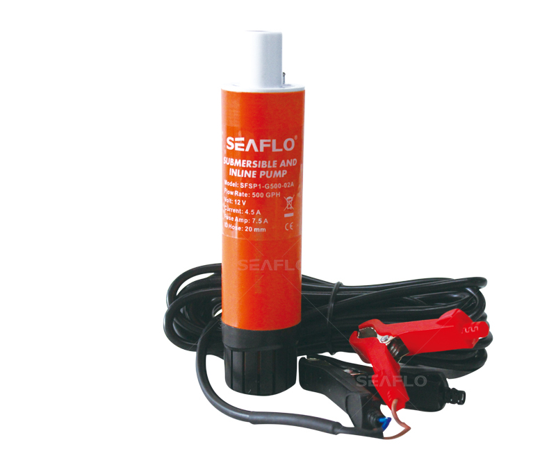 Погружной/встраиваемый насос SEAFLO прокачивающей мощностью 500 галлонов в час (32 л/мин). Насос может перекачивать морскую воду и дизельное топливо.